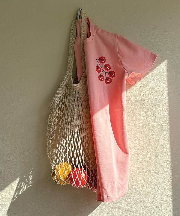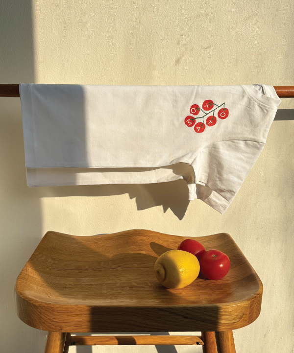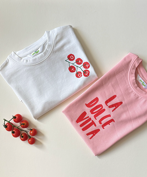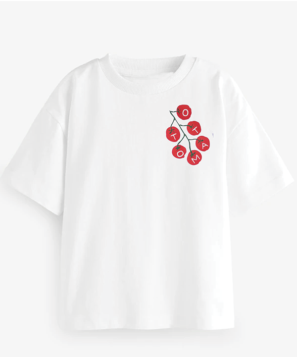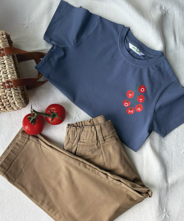 “Our Tomato Vine Print , also “”The Little Tomato Patch””is a playful take on farm-fresh living, this hand-drawn print brings the charm of the market straight to your little one’s wardrobe. Inspired by sun-kissed tomatoes on the vine, it’s a reminder of the joy found in simple, wholesome moments—like picking fresh fruit with tiny hands.